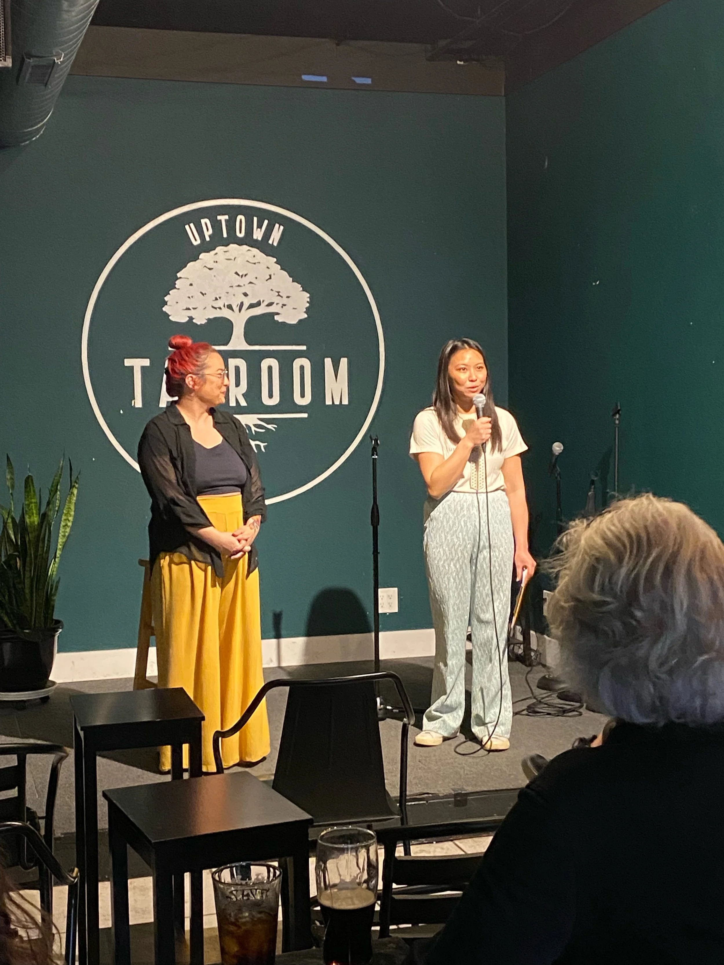 Cambodian American, Mary Kethya Khuon is a former NYC fashion designer turned writer, comedian, and actor now based in Chicago. She has performed stand-up and sketch comedy at the Laugh Factory, iO, & the Den Theatre. Off-stage, she is a passionate advocate for mental wellness, working as a somatic coach and keynote speaker for universities through her organization, Sincerely Miss Mary.